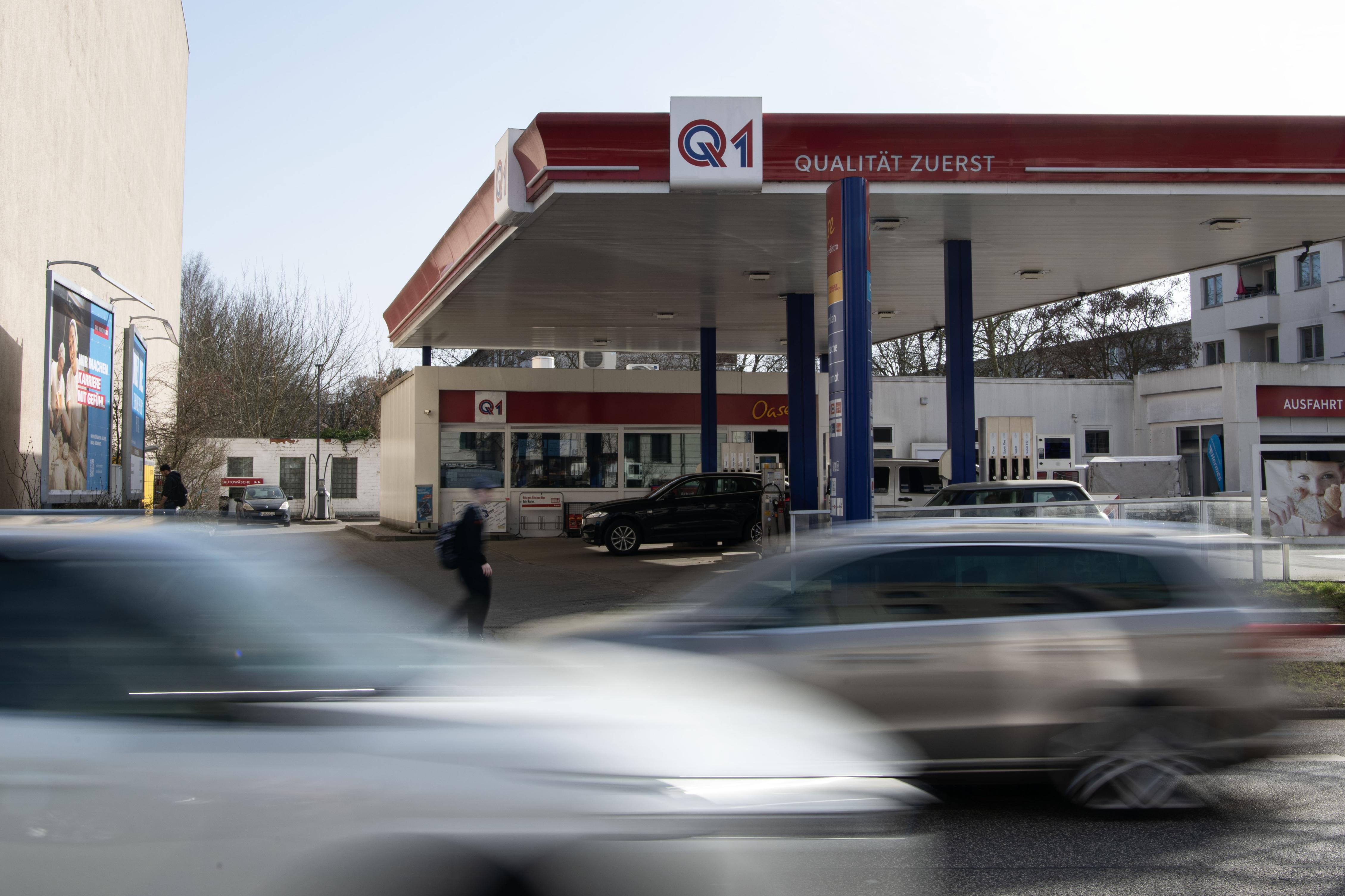 3月9日,车辆驶过德国齐门柏林的一座加油站。新华社记者张豪夫摄
