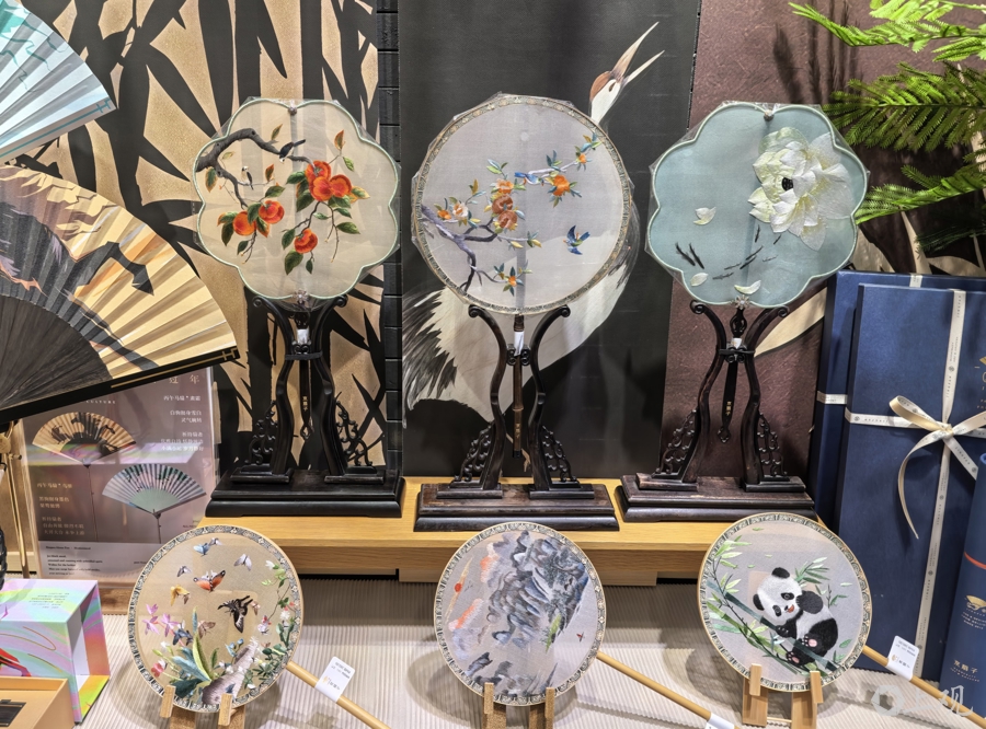 “京扇子”店门前的花艺联想与别处很不同,店家用淡黄色的芦苇条联想了一组造型,点缀上白粉相间的清雅花团,配在斑驳的门头上,别有一番清雅之气。联动花草节,店铺进门最显眼处的案台上摆了一组细巧的手工苏绣扇,昂首看,头顶上还挂了两排拈花扇。店长先容,这些手工苏绣扇绣起来相称致力,即便老成的绣娘,绣一把扇子也要两个星期。头顶上的那两排拈花扇都是店内崇尚品,因花型更复杂,绣娘至少要绣一个月。门店客单价在400元摆布,80%的糟践者都是异邦旅客。