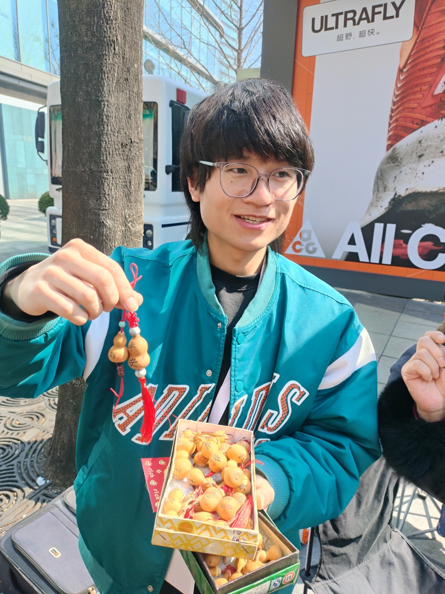 现场不仅有美妙歌声,还有合手面东谈主、漆扇、海派葫芦艺术雕镂身手……非遗匠东谈主为市民带来现场展示。来自崇明的海派葫芦艺术雕镂身手传承东谈主小黄学习葫芦雕镂十余年,传承父亲的技艺,这个春节,他废弃居家团圆,在街头与市民相易互动。他说,这个春节固然莫得在家团圆,但能在街头展示身手、获利祝贺,还意识了许多新一又友,对他而言是一次相配又出奇的过年体验。