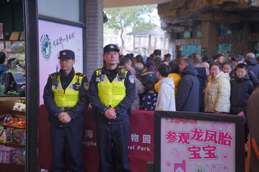 同期,分局宣桥派出所民警荟萃园区责任主说念主员在猛兽区、步碾儿区等区域建造安全警示标识,安排专东说念主值守热点动物场馆,配合园区的“活水式”入场决策实时管控场馆内客流,幸免东说念主群集结。让搭客们在萌趣的游园氛围中既能近距离感受动物的可人,又能定心游玩。