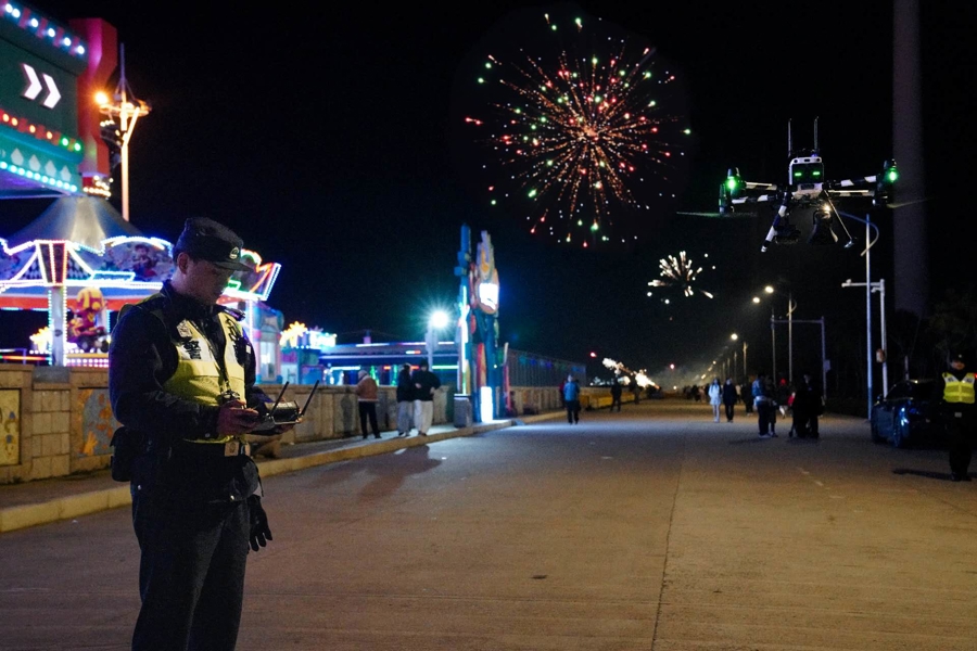 春节工夫,浦东分局组织警力,会同500余名祥瑞志愿者在南汇新城蚁合燃放点位开展值守照管责任,率领大家安全合规燃放烟花炮竹。宝山分局组织警力在滨江步谈沿线开展巡查防控,同期,合营区消防部门安排消防挽救车辆、东谈主员在相近待命,确保实时处理各种安全隐患。奉贤分局对持科技赋能,哄骗警用无东谈主机对相干区域开展空中巡控,实时发现违章燃放及各种隐患。