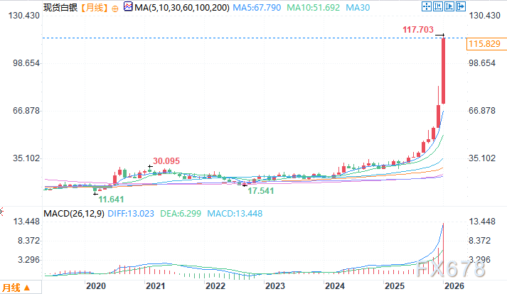 他说:“虽然黄金继续有序上涨,没有许多泡沫出现的迹象,但白银显然已经进入了泡沫区域,零售参与、投机头寸和担忧错过行情是推动银价上涨的主要驱动因素,这将银价推高到历史上相对于黄金和铂金的昂贵水平。”