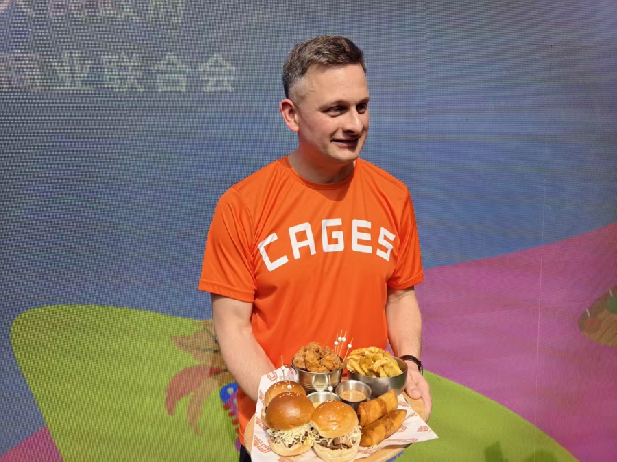 CAGES凯吉想西餐厅畅通乐土的商场总监Philip(菲利普)将特质好意思式拼盘带到现场。这款汉堡胚松软有嚼劲、肉饼鲜美多汁,加上水牛酱鸡翅和金黄酥脆的薯条,相等诱东谈主。“咱们主打好意思国南部风仪,酱料就有整整12种,不仅有热辣的布法罗辣酱,还有成心为上海腹地一又友调配的甜味和酱油味。”菲利普先容,凯吉想在上海运营已有10年,将餐饮与棒球畅通、团建约会勾通,是体育迷们缺点错过的矿藏圣地。