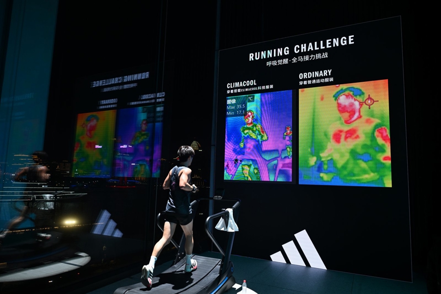 在好意思术馆二层,阿迪达斯经心打造“呼吸科技革命展厅”,呈现CLIMACOOL清风透气科技平台下的最新革命居品矩阵,散失高强度体育场景到通顺活命好意思学。而在好意思术馆三层,阿迪达斯将全程马拉松(42.195公里)初次置入室内空间,十位跑者致使力于体式完成挑战。现场设置热成像检测系统,及时捕捉跑者驱驰经过中的体表温度变化,通过热成像画面,直不雅呈现“一稔CLIMACOOL居品”在通顺中带来的降温服从与体温调控阐扬,让科技的力量可感可及。