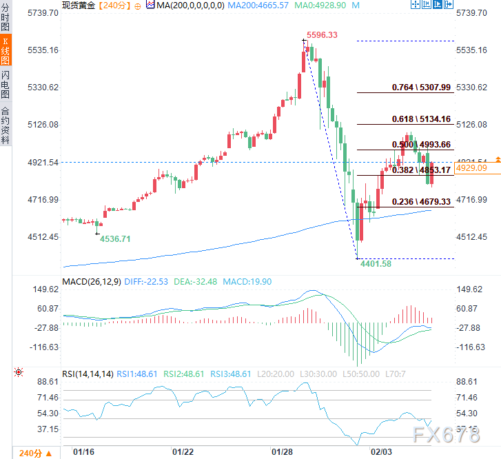 不外,200周期出动平均线(MA,4665.57)稳步朝上,而金价当今仍位于该均线之上,举座上行趋势结构尚未絮叨。以近期高点与低点的波动区间狡计,50%斐波那契回撤位4993.66好意思元组成初步阻力,若能冲破该位置,则可能进一步挑战61.8%回撤位5134.16好意思元,若收盘价能踏实站上该阻力位,将显贵增强看涨信号,并为后续反弹掀开空间。