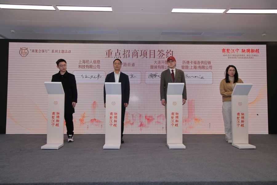 会上,江宁路街道党工委书记刘尚宝与新落户企业代表历德卡福连供应链管理(上海)有限公司、上海初人信息科技有限公司及大连开图服装有限公司现场签约。其中,大连开图男装品牌即将于今年上半年在南京西路商圈开设线下旗舰店,为静安时尚产业注入新活力。