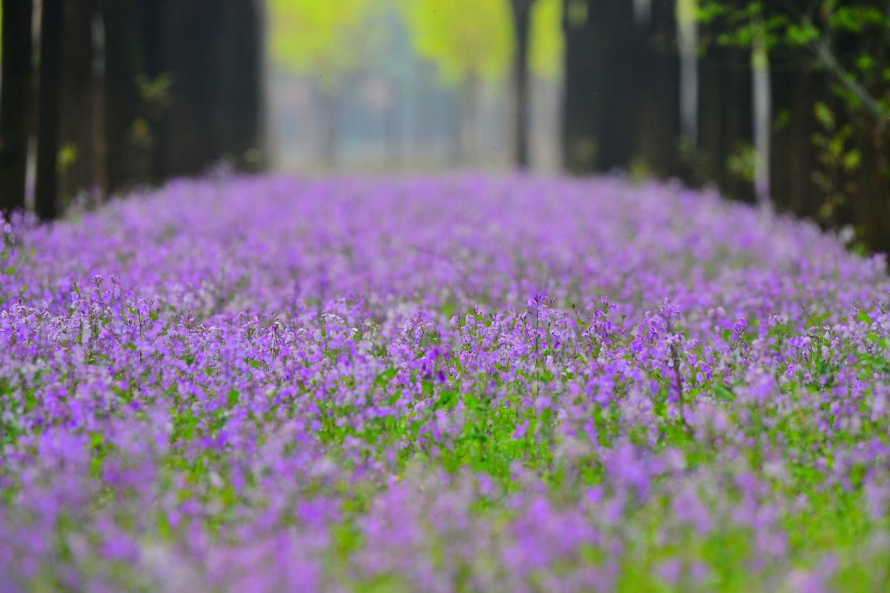 京郊林荫间,二月兰如约灵通,以最质朴的姿态,优配网织就了一派绵延连接的紫色花毯。