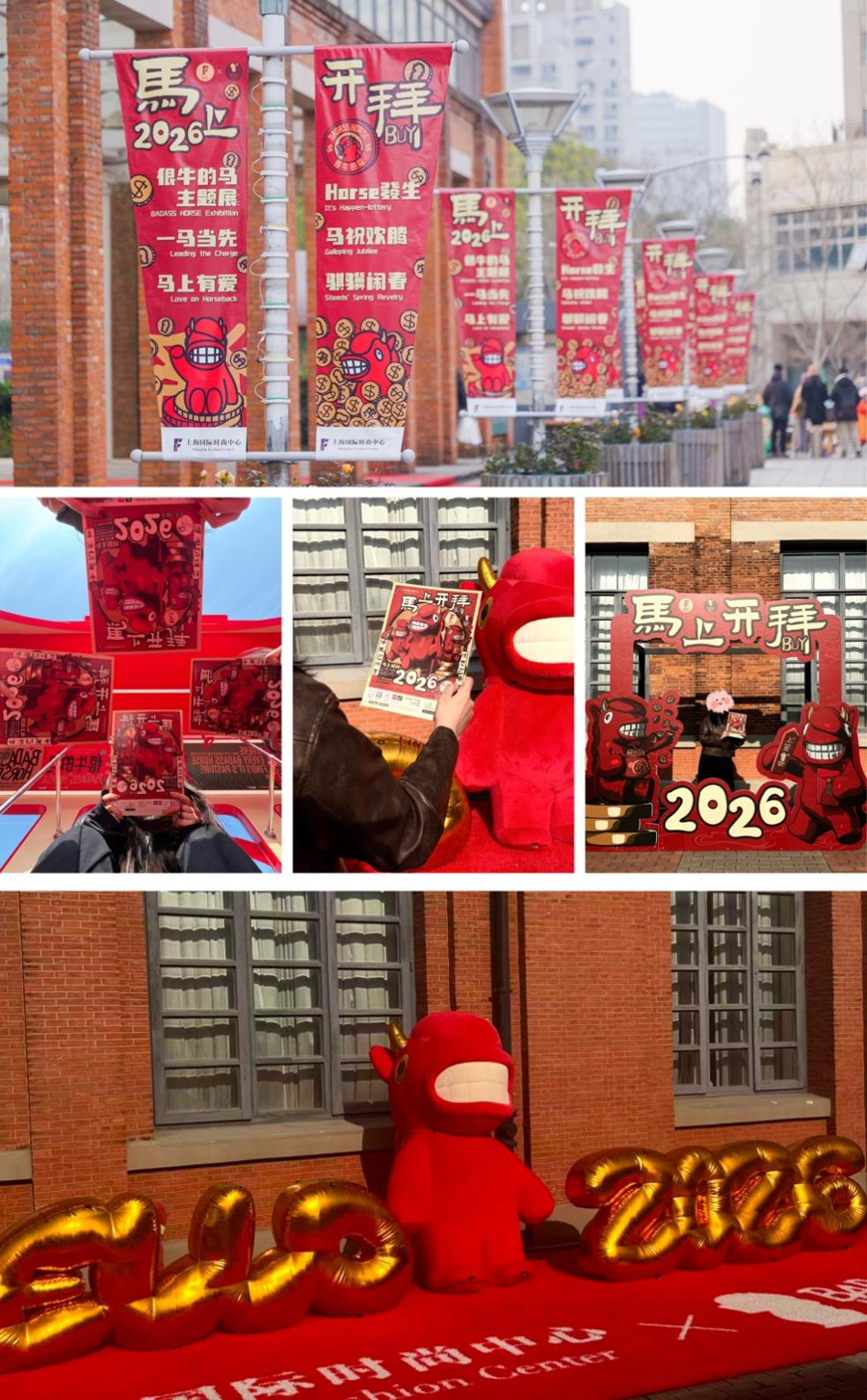 《很牛的马》主题展(1.30-3.3):园区荟萃艺术家宜Eason,将热点IP“很牛的马”大型艺术安装初度引入上海,落地中央广场。现场参与打卡互动,即可解锁IP定制红包、新年剪纸摆件等潮趣好礼,为新春注入满满好运。