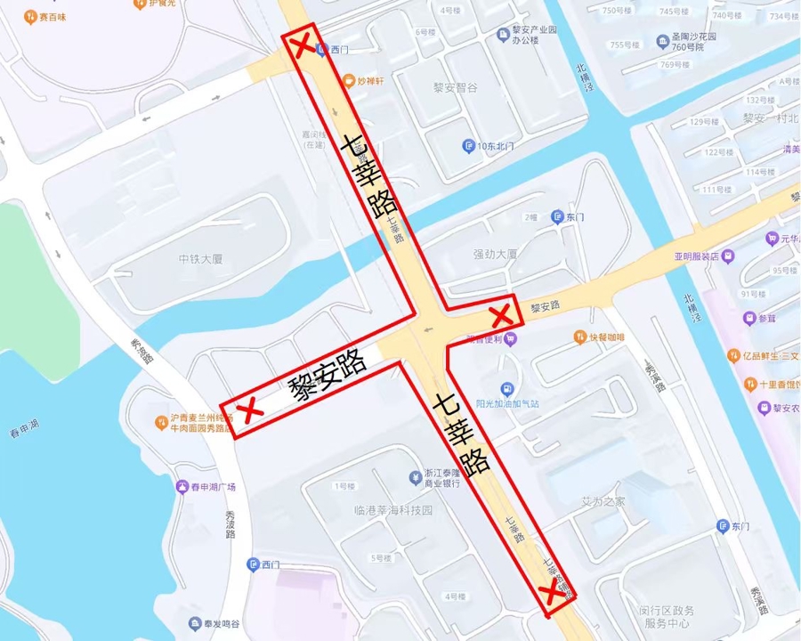 封锁路段具体为:七莘路(北起黎康路—南至七莘路1189号近秀文路);黎安路(西起秀波路—东至黎安路667号近秀溪路)。