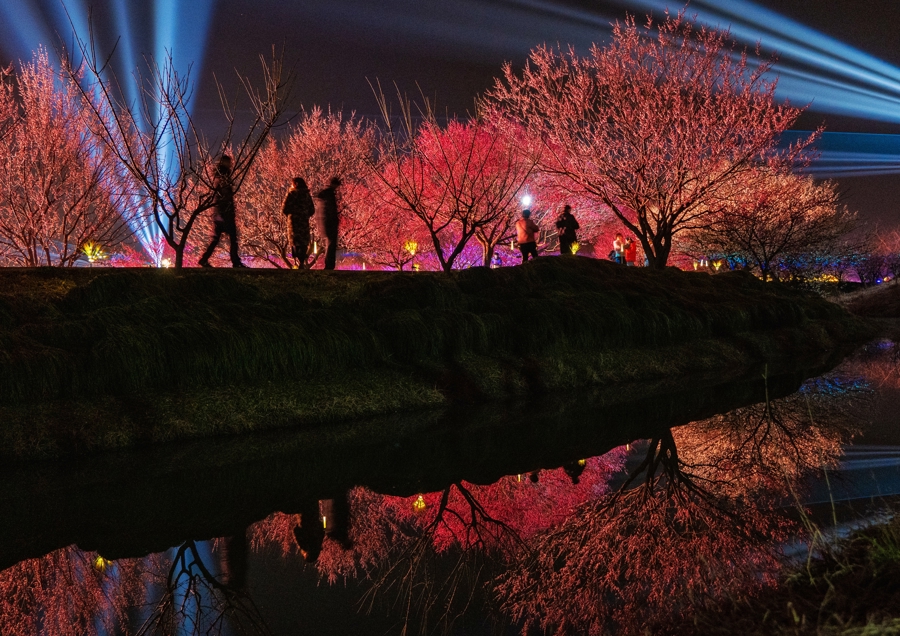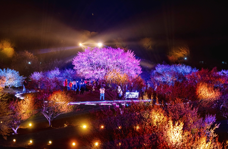 “咱们是下昼到的,那时就在思晚上若是也能看就好了,没思到本年确切开了夜场。”趁着春节假期从市区专程赶来的陈女士,带着家东谈主从白日一直逛到夜幕来临。她告诉记者,白日孩子在梅林奔走嬉戏,入夜后一家东谈主穿梭光影之间,“像是走进了两个迷漫不同的宇宙,这一归来得太值了。”