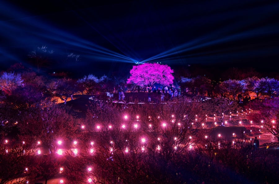 2月18日傍晚,暮色来临,位于金山区朱泾镇“芳醇小镇”中枢区的花开海上生态园悄然换装,白日已经暗香浮动、疏影横斜的淡雅画卷,入夜后陡然化作流光溢彩的梦乡宇宙。春节时刻,园区初次推出“梅香夜游光影秀”,以200亩梅园为自然幕布,用光影为笔,为市民搭客呈现一场“昼赏梅、夜不雅秀”的全新体验。