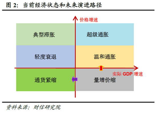 一方面,GDP平减指数已连续十个季度为负,与实际GDP约5%的增速共同构成“量增价缩”的宏观格局。这种“以价换量”的增长模式难以持续,若价格持续收缩,将逐步侵蚀需求与供给两端,最终使“量”的扩张失去支撑,甚至可能触发经济向通缩螺旋等邻近负向状态演进(见图2)。因此,推动价格水平向合理区间回升,引导经济稳步切换至“量价温和回升”良性轨道,已成为宏观政策的必然选择。另一方面,持续的低物价环境也在削弱“新质生产力”的发展根基。它不仅压缩企业长期创新的利润空间,也因需求端承接不足而阻碍技术创新的价值实现,对产业升级与结构转型构成深层制约。