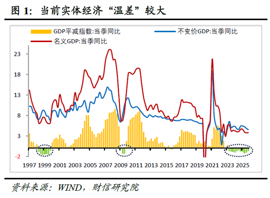 当前我国处于经济恢复与产业升级的关键阶段,经济结构分化显著,微观主体对“量”的冷暖感知差异显著(见图1),市场对总量指标短期波动的反应趋于钝化,实际GDP等传统变量对经济内生活力的表征作用有所减弱。相比之下,价格信号直接牵动企业盈利与居民收入,不仅在弥合认知分歧、凝聚复苏共识方面作用凸显,更是激活“价格-盈利-收入-消费”正向循环的关键枢纽,因而成为观测经济内生动能的关键指标。