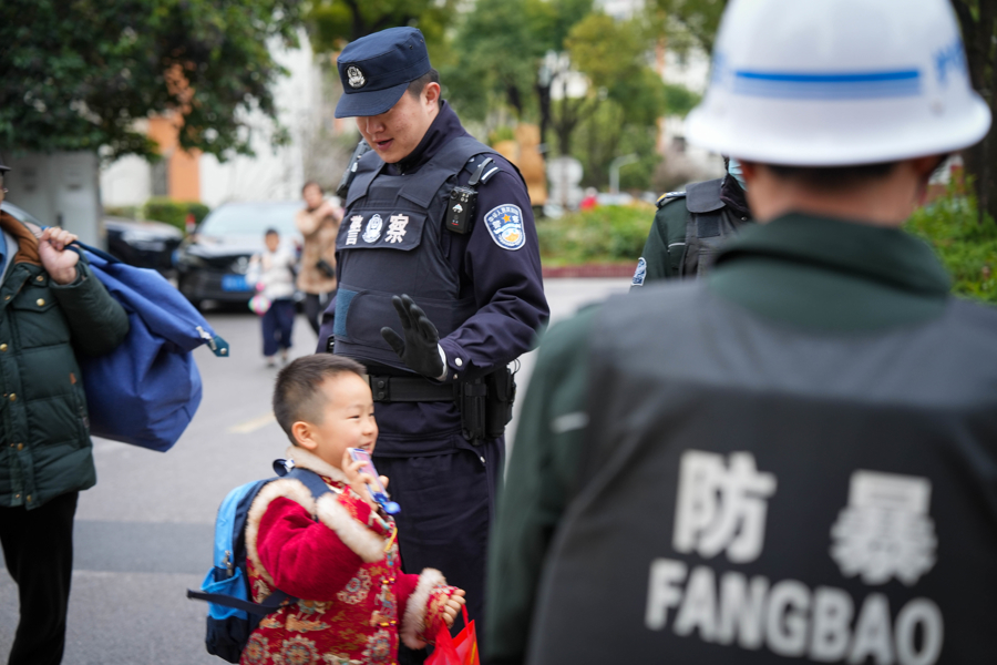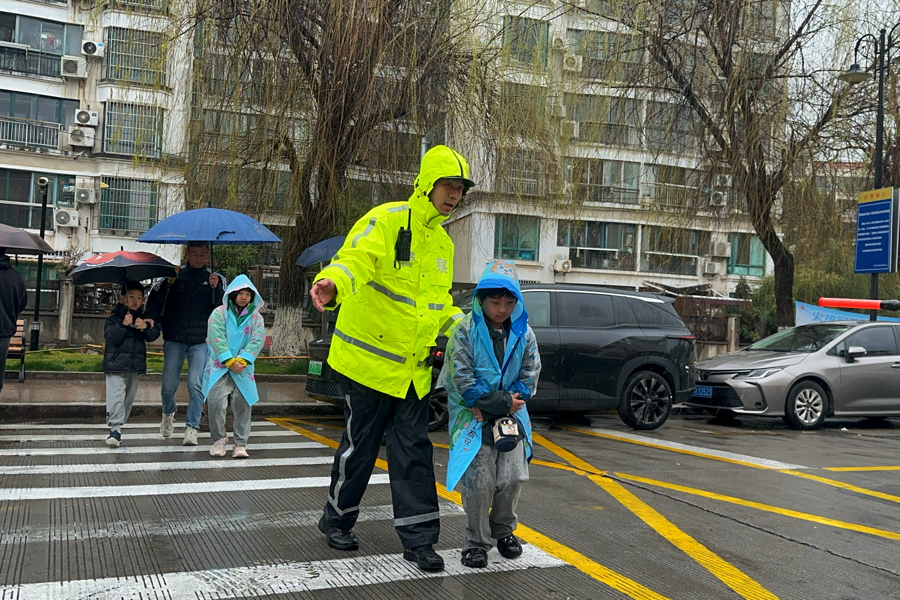 开学首日一早,遍布全市的公安“护学岗”准时上岗。民警们身着藏蓝警服,在车流中穿梭指引,手势圭臬、动作利落。